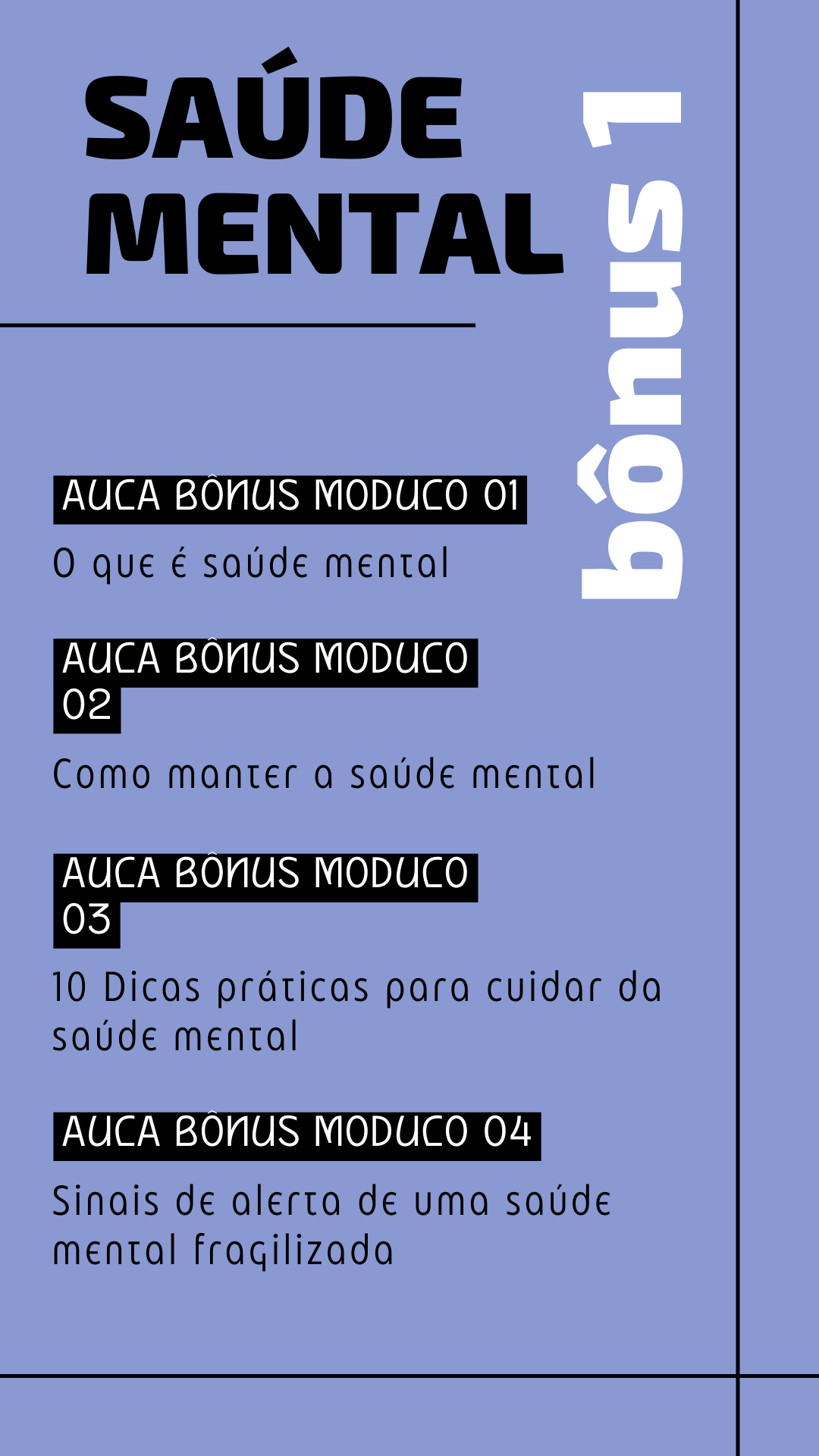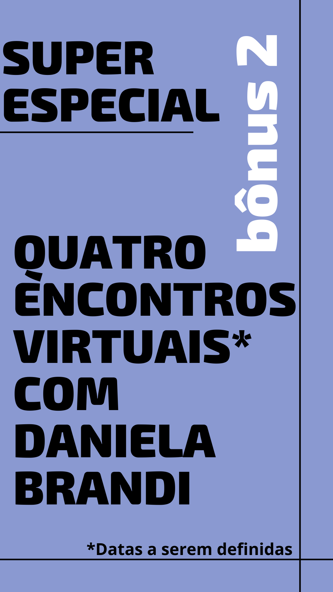 Aulas gravadas em plataforma tecnológica, materiais complementares e certificado com horas. Bônus incluem módulo de Saúde Mental e encontros virtuais com Daniela Brandi. Estude no seu ritmo, acesse quando quiser.