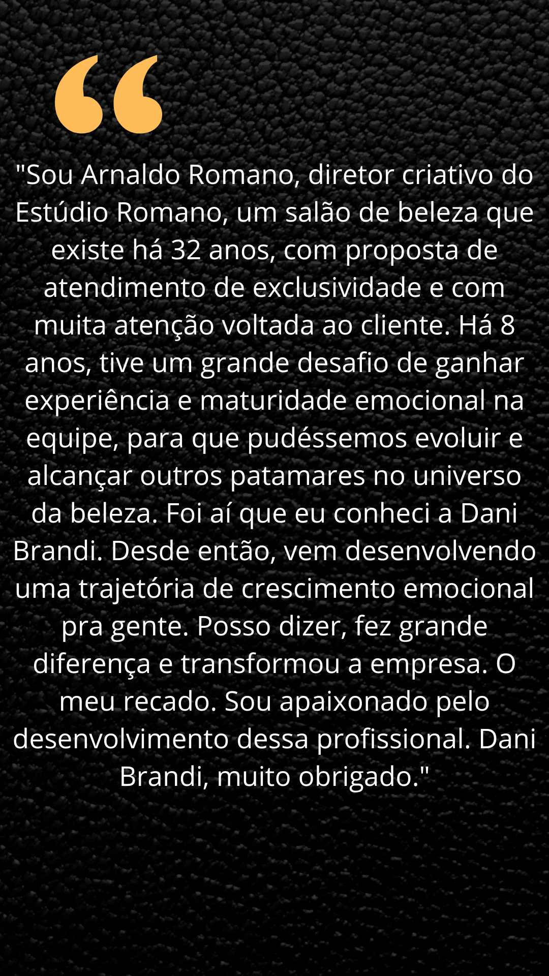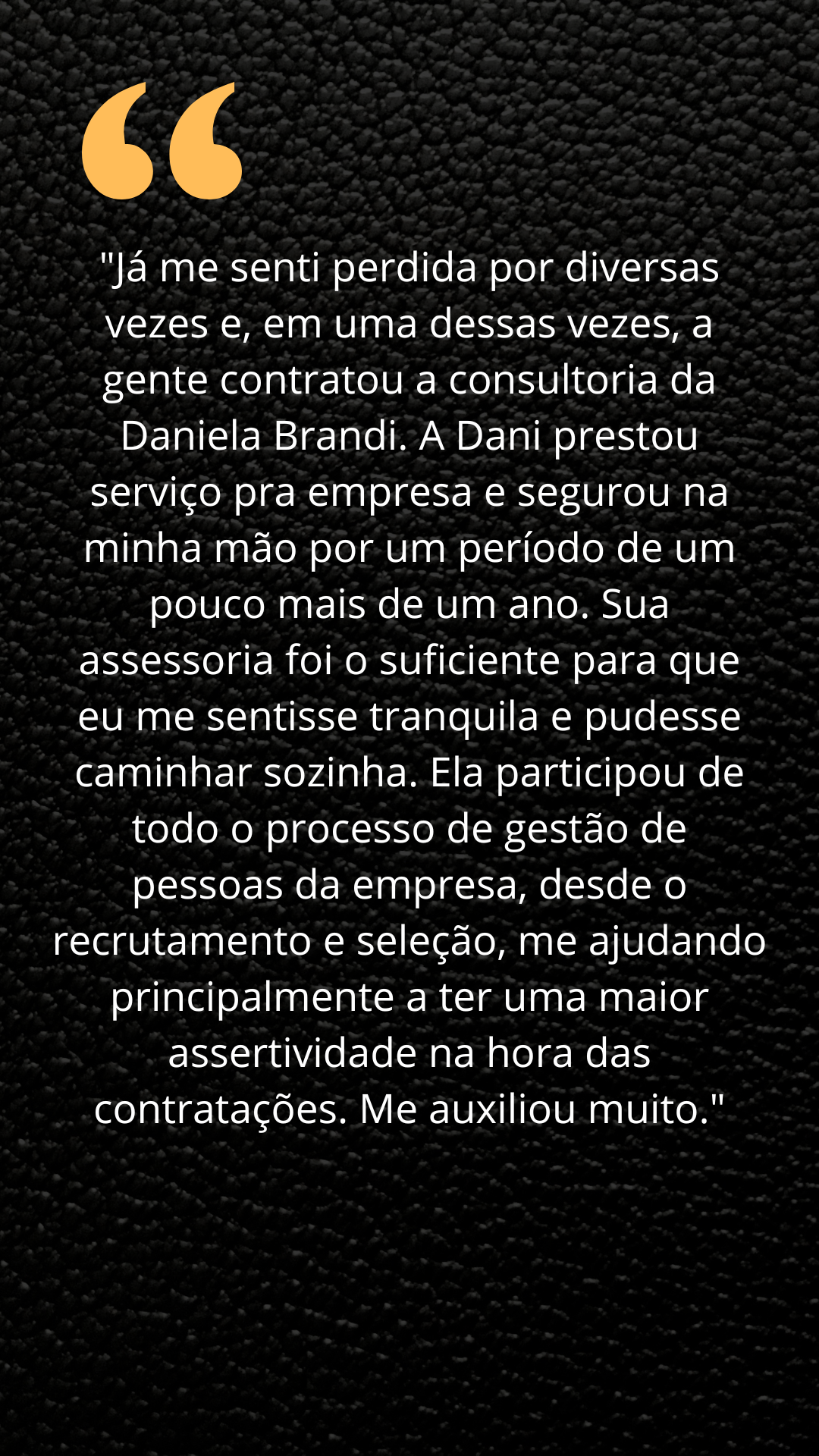 Daniela Brandi tem mais de 25 anos de experiência em Gestão de Pessoas e é uma especialista no tema. Suas técnicas comprovadas e eficazes ajudaram as empresas a melhorar o desempenho dos funcionários e impulsionar o sucesso da organização.